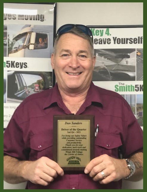 Congratulate Dan Sanders for earning the (Driver of the 2nd Quarter) 2023. Dan in the maroon shirt, is recognized by Windy Hill Foliage, Inc. Dan represent Windy Hill as a “Carrier of Choice”. Thank you, Dan, for your outstanding performance here at Windy Hill.